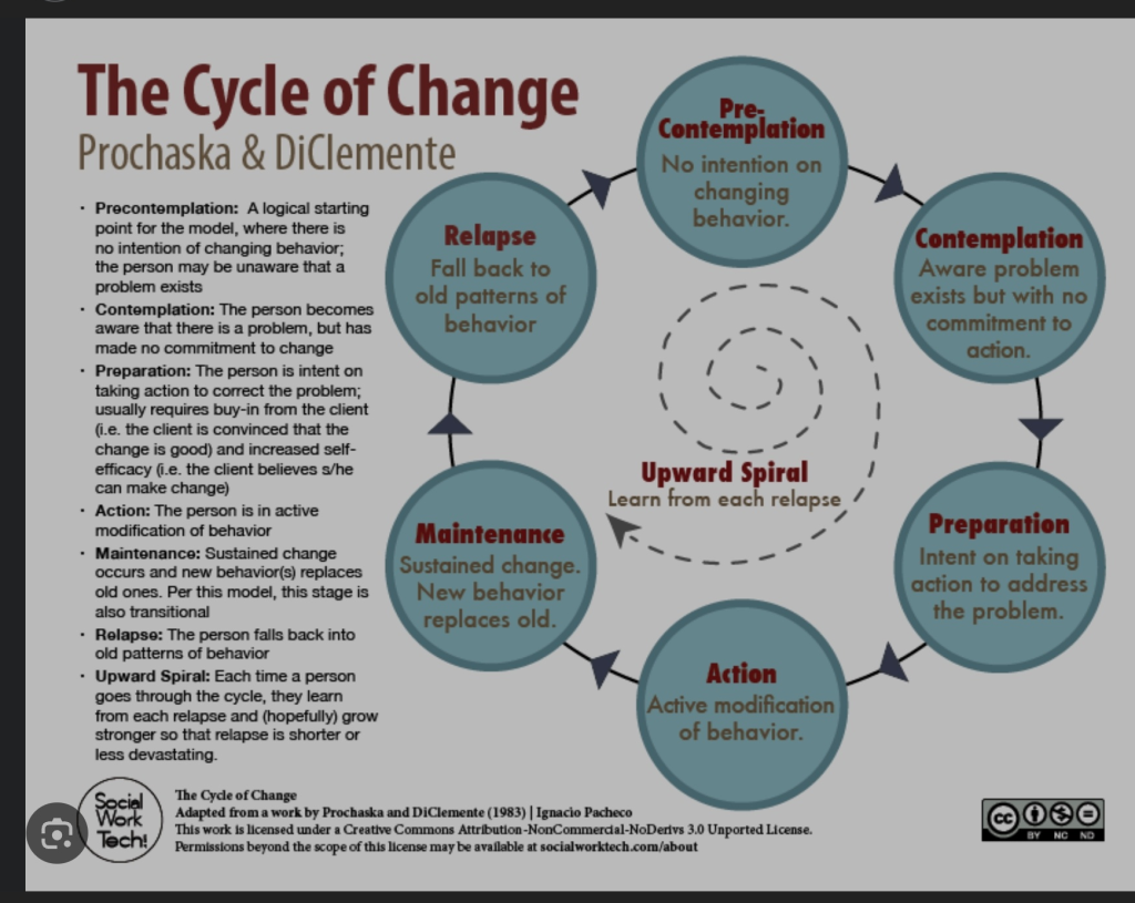 گرچه، همونجور که در ابتدا اشاره شد، این یک دایره هست نه خط صاف. گاهی افراد سالها در مرحله نگهداری میمانند و حتی گاهی تا آخر عمر.